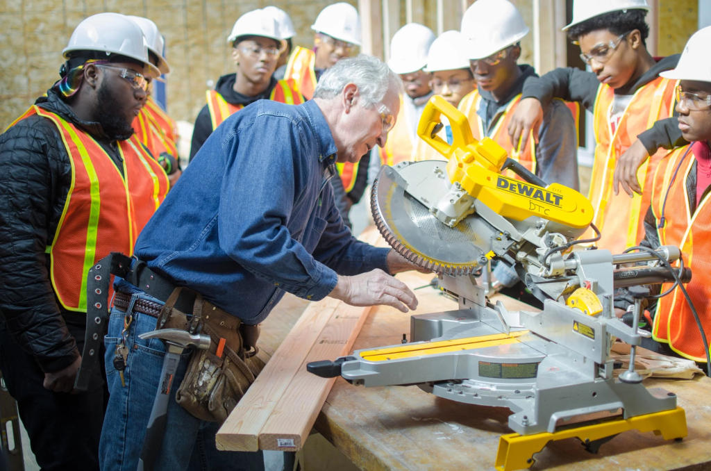 - Focus: Learn the basics — measuring, cutting, framing, safety protocols, and using power tools.